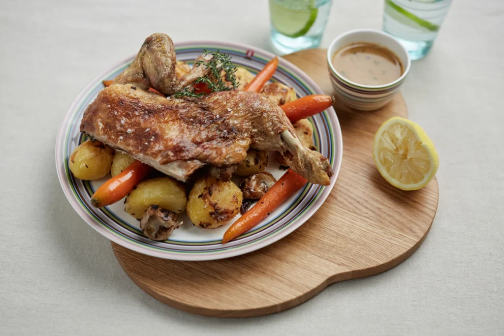 Keptas viščiukas su bulvėmis