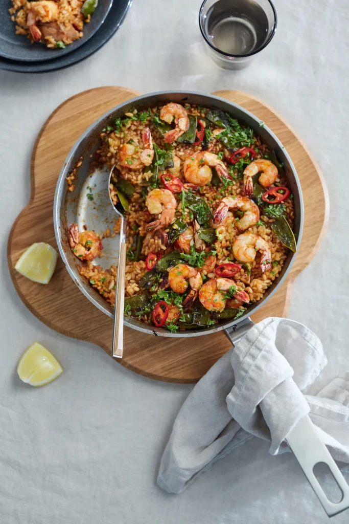 Paelija su krevetėmis, vištiena ir Chorizo dešra